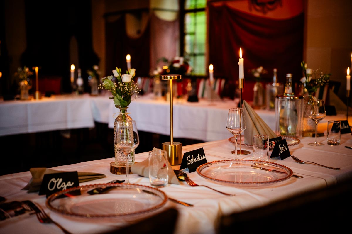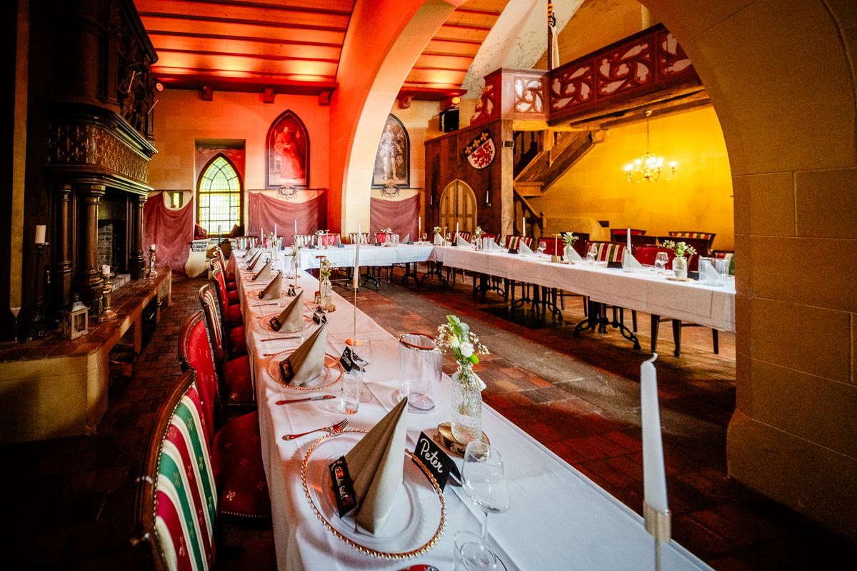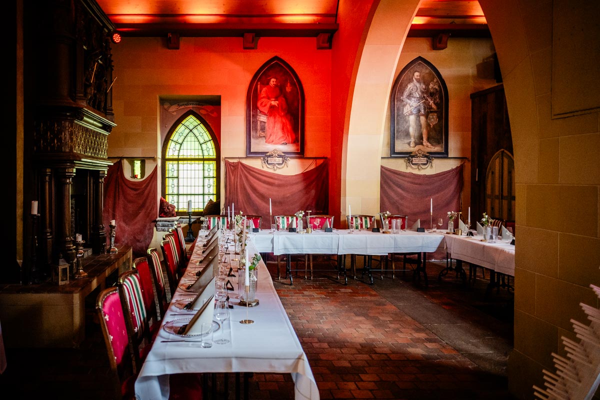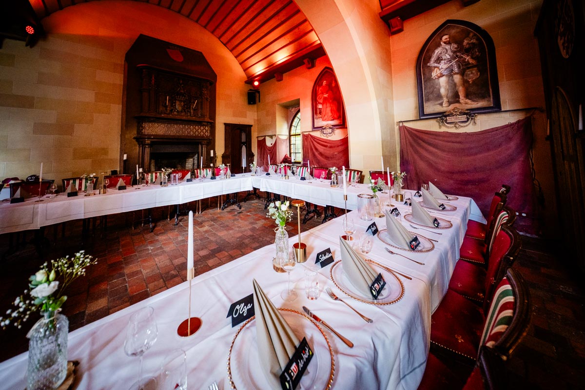 Ob kleine, intime Feier oder großes Fest – die Burg bietet flexible Räume für verschiedene Gruppengrößen. Von stilvollen Trauzimmern bis hin zu großzügigen Sälen für die Abendfeier bleiben keine Wünsche offen.