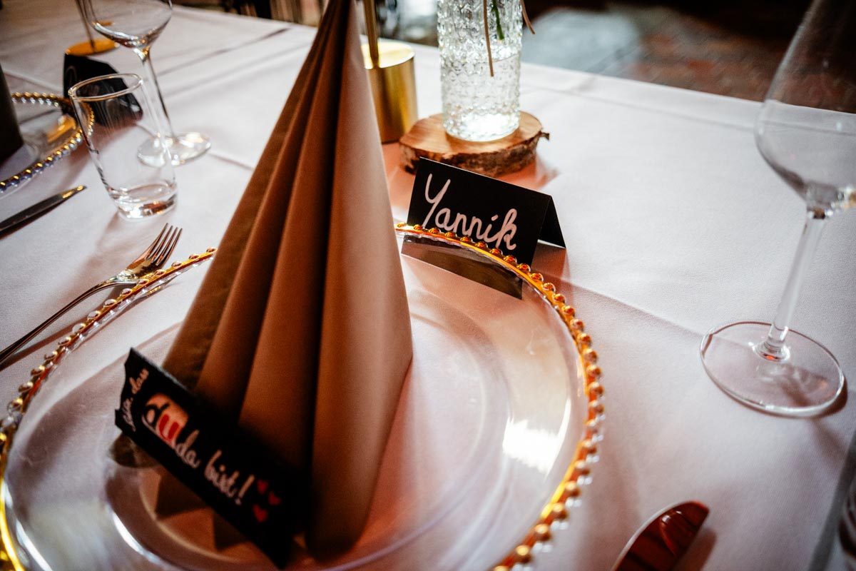 Das Hochzeitsbuffet wird im Saal neben der Spiegelbar aufgebaut. Es ist abwechslungsreich und sehr lecker. Ihr könnt euch das Hochzeitsessen selber zusammenstellen.