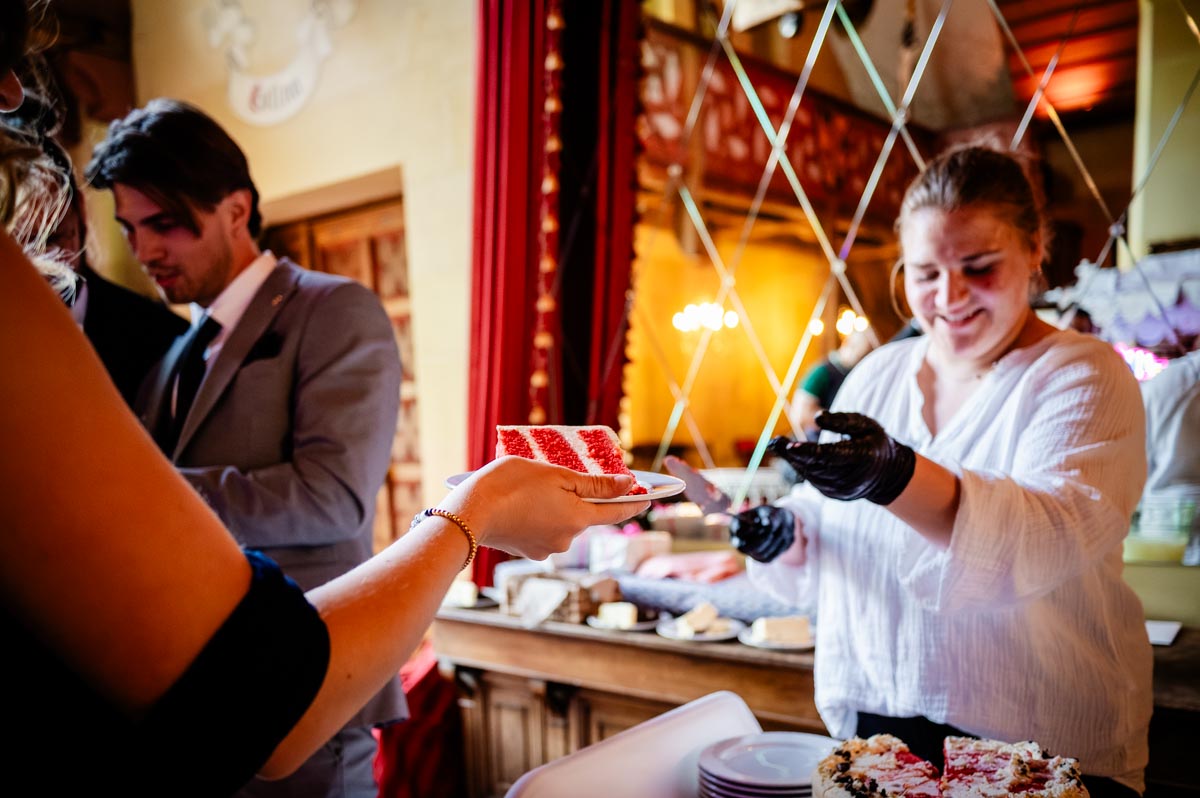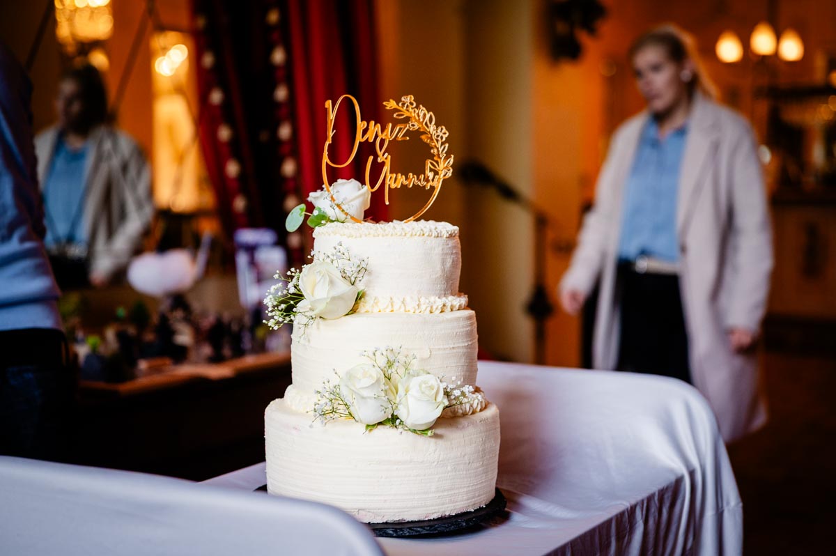 Der große Saal hat mehrere Funktionen bei Eurer Hochzeit. Hier wird gegessen, gefeiert und auf Wunsch auch die Hochzeitstorte angeschnitten.