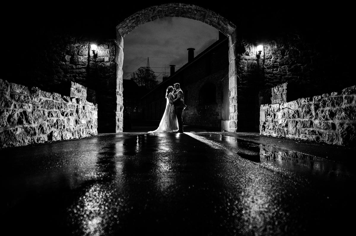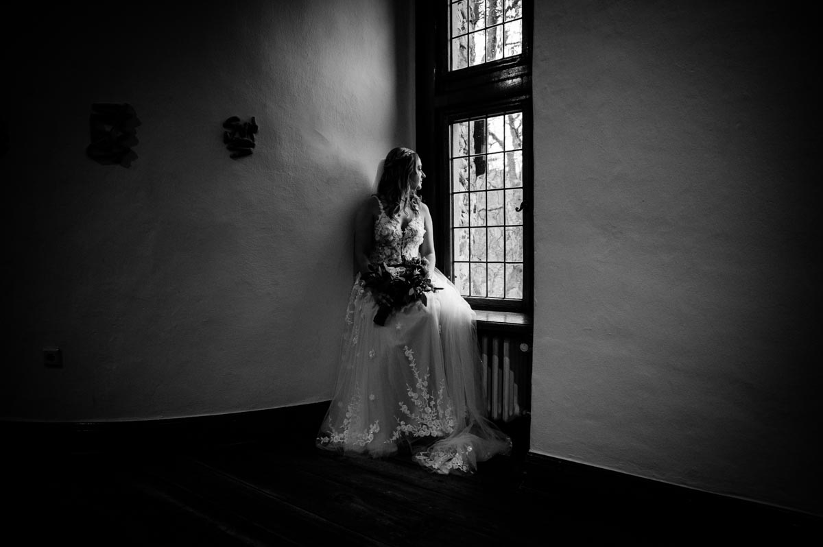 Irgendwie bin ich als Hochzeitsfotograf immer im Herbst und im Winter an der Wasserburg. Was mich aber nicht stört, ich liebe die „dunkle“ Jahreszeit sehr für Hochzeiten. Es herrscht eine ganz andere Stimmung als bei einer Sommerhochzeit. Es wird früher dunkel, weshalb auch schon viel früher außergewöhnliche Hochzeitsfotos mit Kunstlicht erstellen kann.