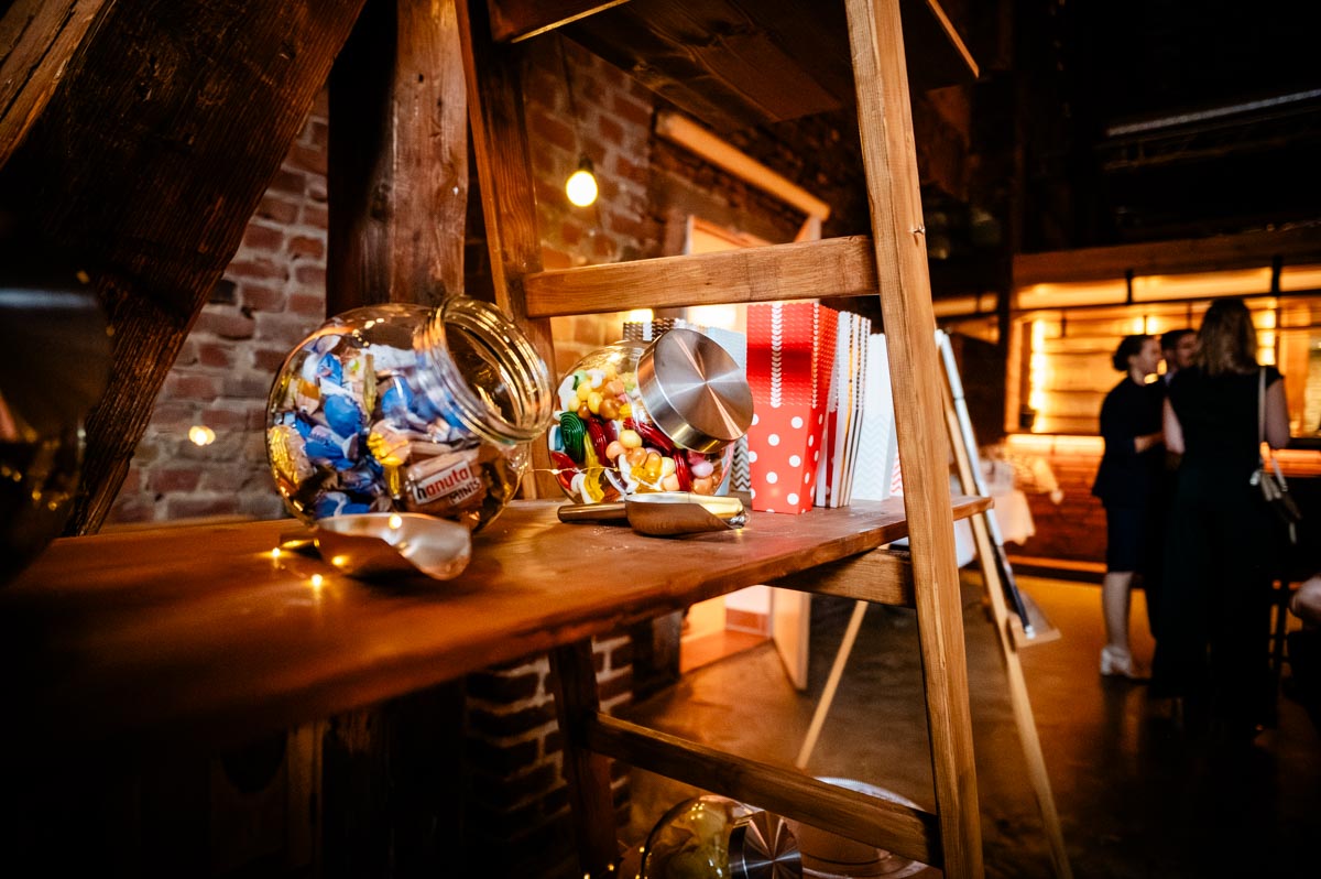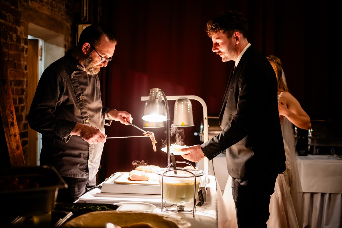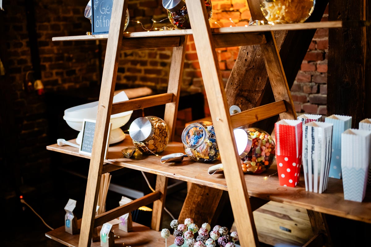 Da die Scheune vom Haus Kemnade so groß ist, ist auch genug Platz für das Hochzeitsbuffet vorhanden. Das gute ist, dass das Buffet auch noch während der Hochzeitsparty stehen bleiben kann, da es nicht stört. Das Buffet ist reichhaltig und bietet für jeden etwas. Ihr habt eine große Auswahl und könnt euch euer Hochzeitsessen selbst zusammenstellen.