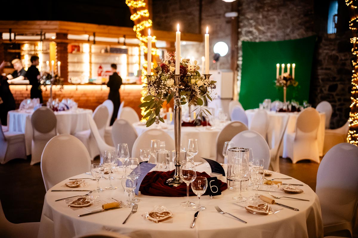 Die Scheune sticht dabei besonders hervor: mit alten Backsteinwänden, edlen Holzbalken und ihrem natürlichen, warmen Charakter entsteht sofort ein einzigartiges Hochzeitsgefühl.